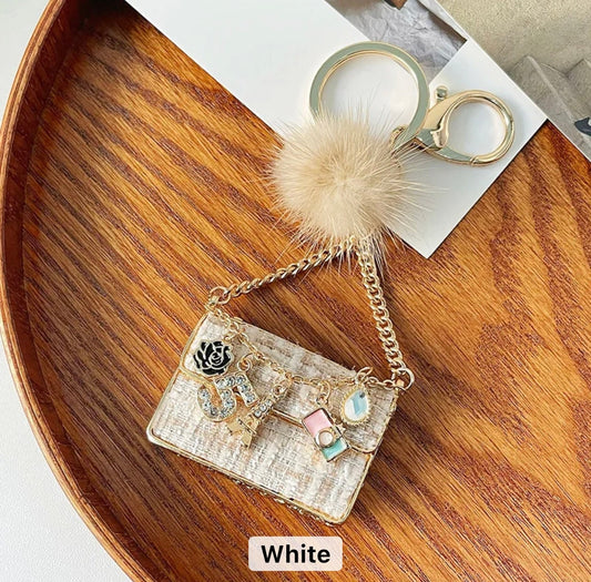 Beautiful Elegant Luxury Mini Handbag Shape Keychain Key Ring Girls Gift Rhinestone Tweed lovely shiny Keychain